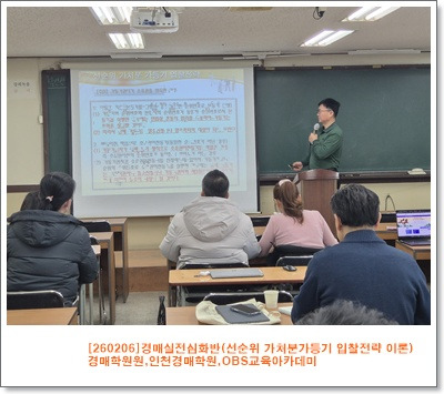 [260213]경매실전심화반(수익성있는 상가 입찰전략 조사,보고)-경매학원,인천경매학원,부동산경매학원,OBS교육아카데미 (0) 2026.02.13 [260212]경매148기 법원실습&저점확인 주식투자기법-경매학원,인천경매학원,부동산경매학원,OBS교육아카데미 (0) 2026.02.12 [260205]경매기본정규과정(여러가지 대항력2)-경매학원,인천경매학원,부동산경매학원,OBS교육아카데미 (0) 2026.02.05 부동산민사소송&경매기본정규과정&저점확인주식투자기법-경매학원,인천경매학원,부동산경매학원,OBS교육아카데미 (0) 2026.02.02 경매기본&NPL투자비법&저점주식-경매학원,인천경매학원,부동산경매학원,OBS교육아카데미 (0) 2026.01.29