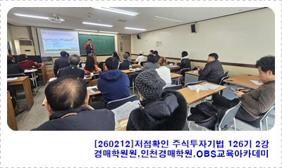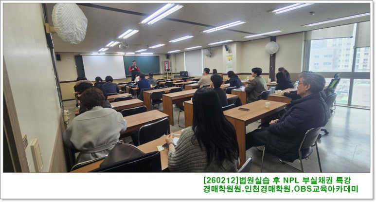 [260219]경매기본정규과정&저점확인주식투자기법-경매학원,인천경매학원,부동산경매학원,OBS교육아카데미 (0) 2026.02.19 [260213]경매실전심화반(수익성있는 상가 입찰전략 조사,보고)-경매학원,인천경매학원,부동산경매학원,OBS교육아카데미 (0) 2026.02.13 경매실전심화&부동산민사소송실무&경매기본-경매학원,인천경매학원,부동산경매학원,OBS교육아카데미 (1) 2026.02.09 [260205]경매기본정규과정(여러가지 대항력2)-경매학원,인천경매학원,부동산경매학원,OBS교육아카데미 (0) 2026.02.05 부동산민사소송&경매기본정규과정&저점확인주식투자기법-경매학원,인천경매학원,부동산경매학원,OBS교육아카데미 (0) 2026.02.02